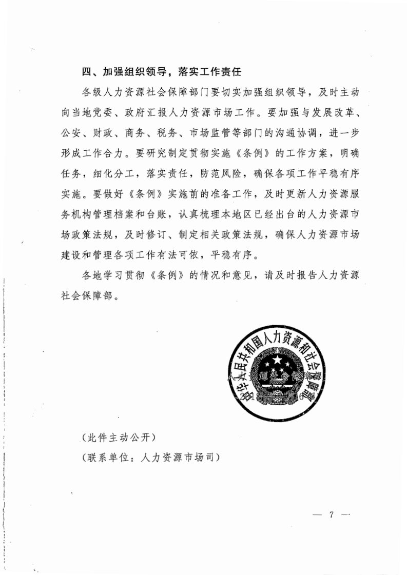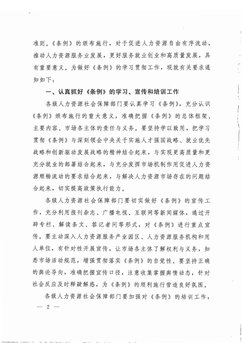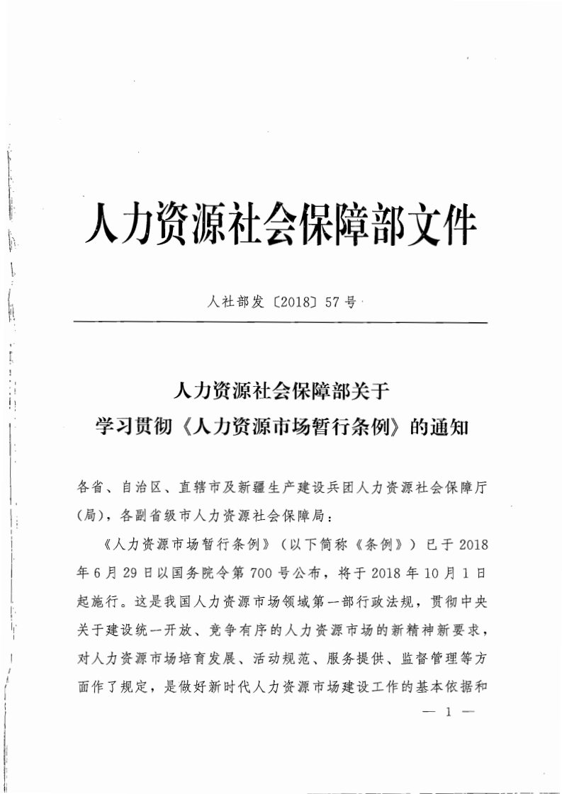 人力资源社会保障部关于学习贯彻《人力资源市场暂行条例》的通知